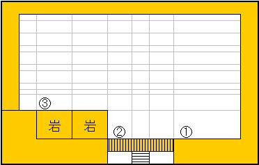 | ・3つの決まった場所で順番に攻撃を繰り返す。(下図の@→A→B→A→@の順番に攻撃) |