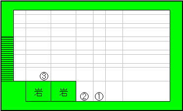 ローリングカッターを受け取る為ウケトルタメに@の場所バショからBの場所バショアタりにかってジャンプをするので、