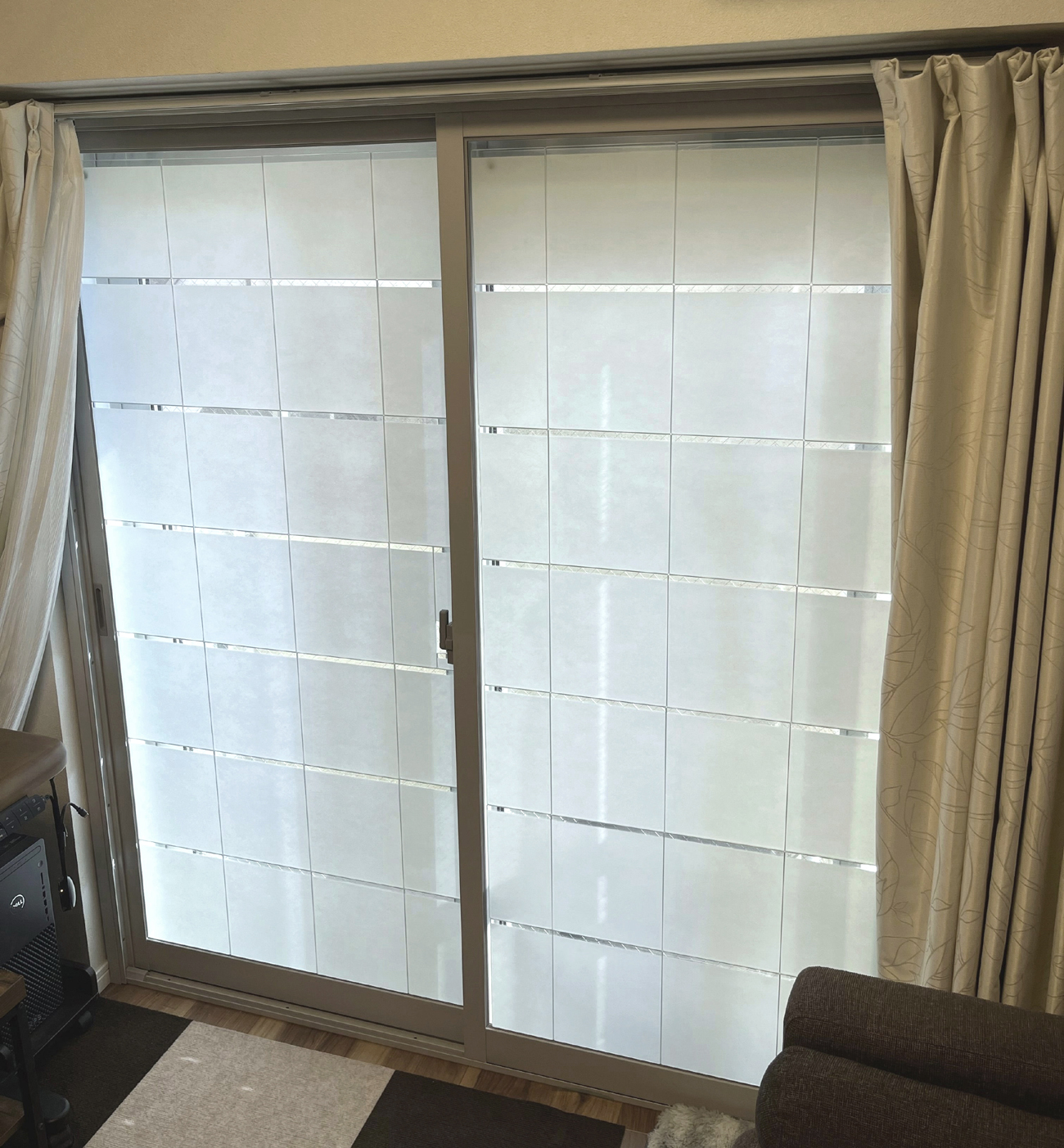 窓ガラスに貼り付けて設置完了です。