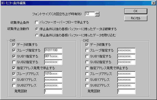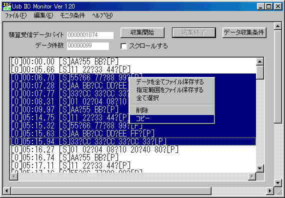 パソコンソフトの収集開始ボタンを押して、IIC疑似信号クロック200KHzで16件のデータを