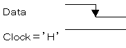 | クロックがHighレベルの時のデータの 立ち下がりエッジからバス通信が始まります。 受信側はこの条件でバス上のデータ取り込 みを開始します。 |