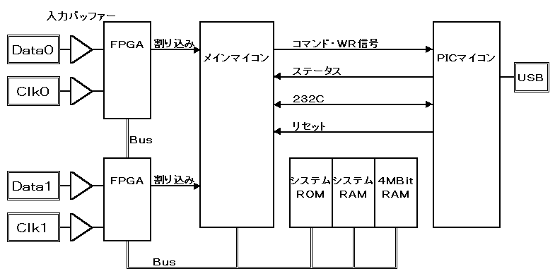 この専用基板とパソコンをUSBで接続し、専用基板に取り込まれたデータをUSBバス経由で