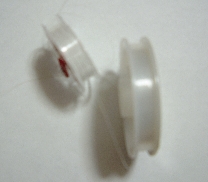 ![]() テグス ペンダント・ブレス・携帯 ストラップ・など長いものを作る時に 使います。いろいろな太さがあり、 写真のものは、2号と3号です。 |